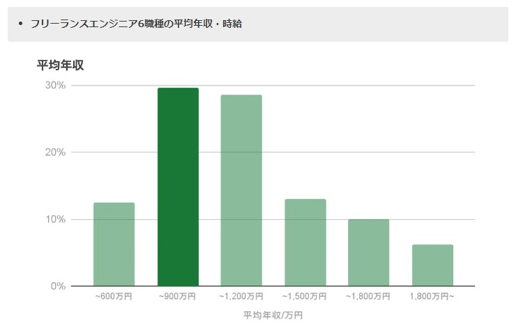 この図は、6種のフリーランスエンジニアの平均年収です。